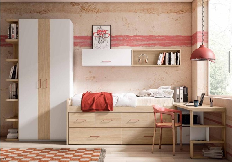Nuestro catálogo de muebles dormitorio juvenil en Mos refleja versatilidad y buen gusto. Desde camas juveniles que invitan al descanso reparador, hasta soluciones de almacenaje que mantienen el orden sin sacrificar el estilo. Nuestro objetivo como empresa especialista en muebles es facilitar, siempre, la vida a nuestros clientes ofreciéndoles muebles cómodos, accesibles y funcionales, intentando ahorrar siempre el máximo espacio posible.