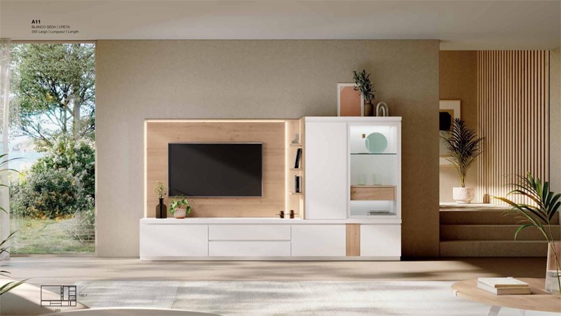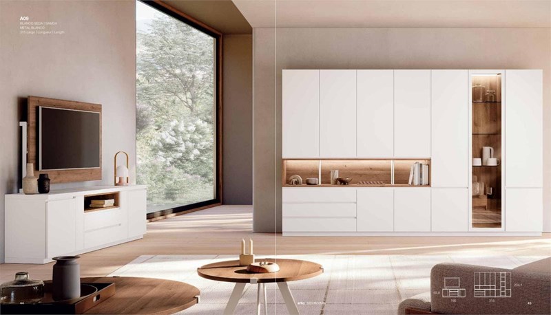 SALON TEMPO 904COLORES: Blanco lacado ALTO BRILLO/Artisán MEDIDAS: Ancho 200+100cm