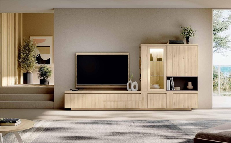 MUEBLE SALÓN MOON 03Roble-Lined blanco